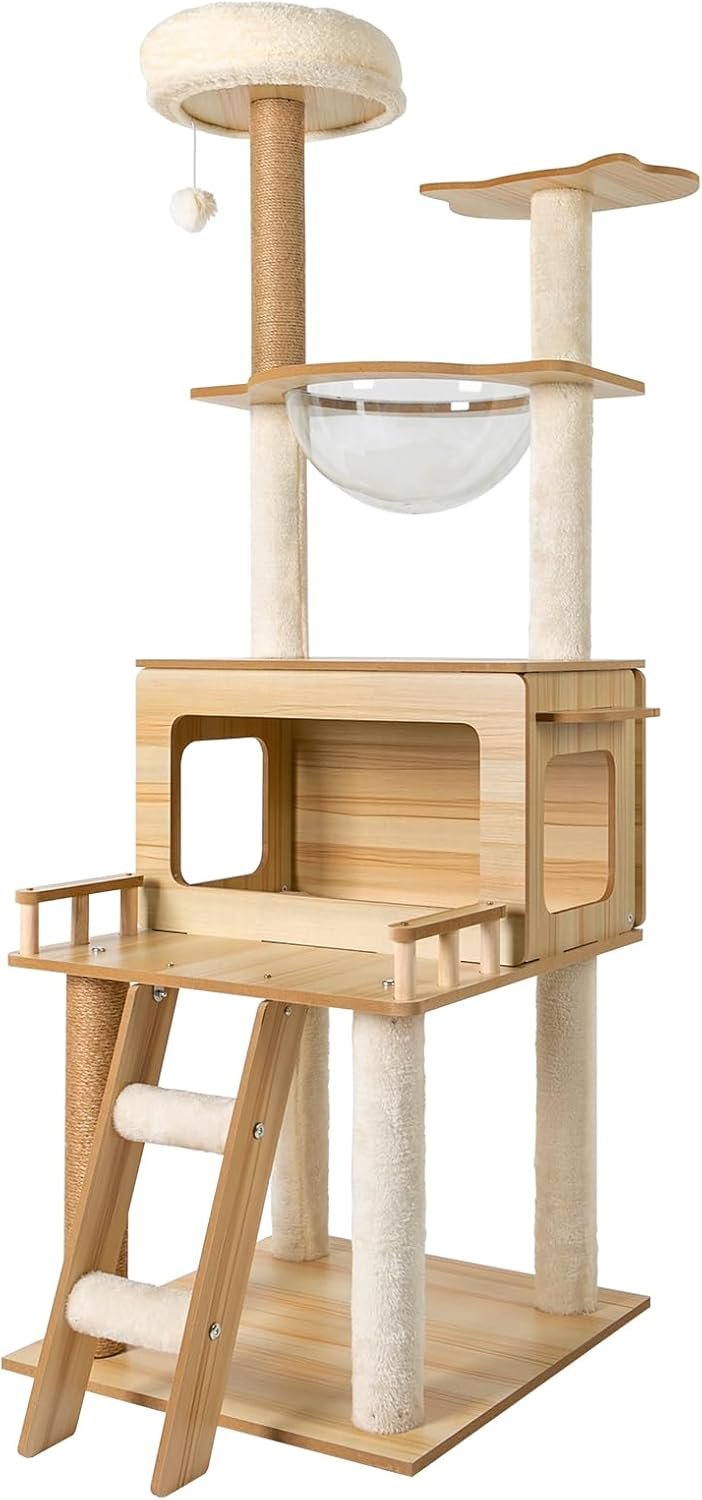 - 👍【Multiple Functions】-The spacious cat tree expands the available area and provides a comfortable space for cats. It comes with scratching posts, wide platforms, a space capsule, cat nests, and a play ball for your cat to scratch, play, and sleep on this cat tree. This will make your cats more lively. With it, your pet can enjoy exploring and sniffing around their new home without scratching your furniture, carpet, clothes, and more.