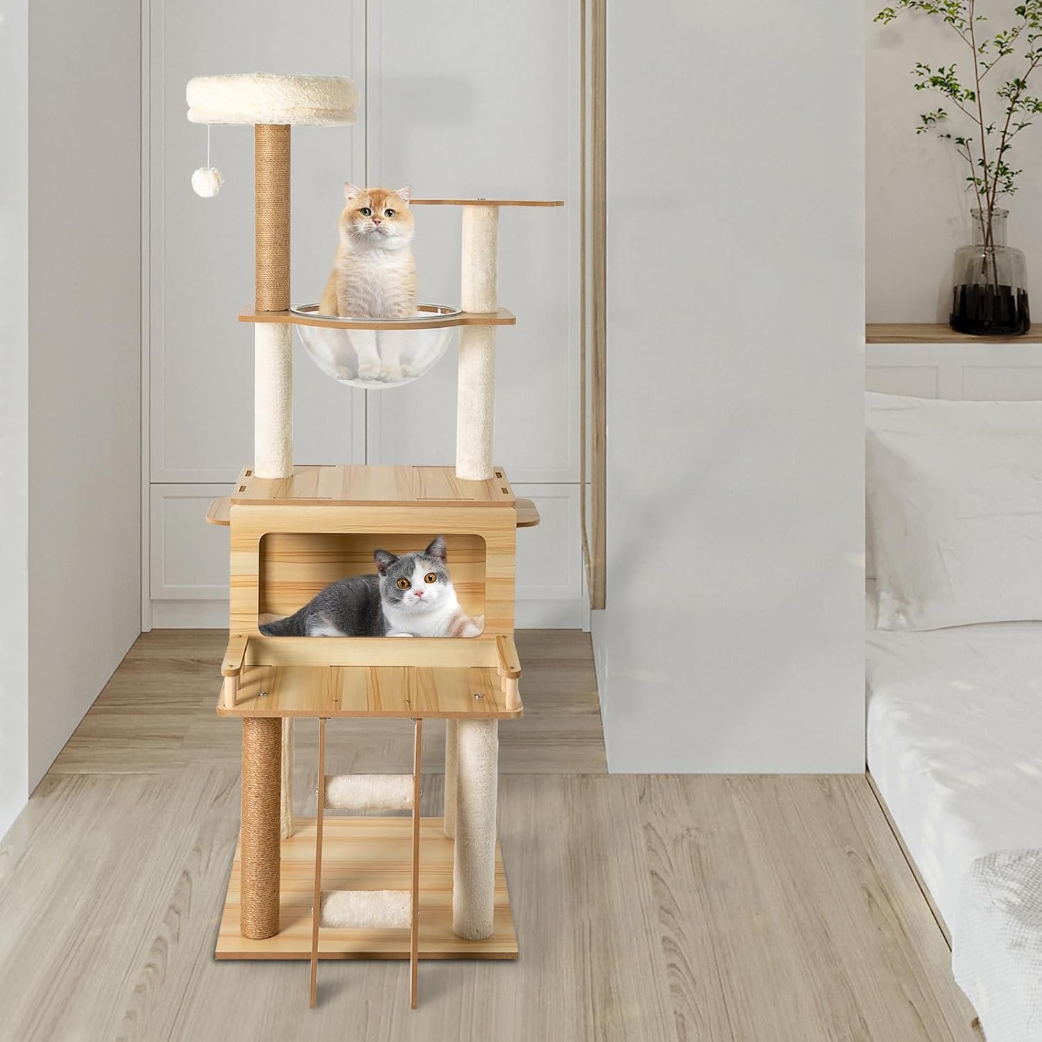 - 👍【Build To Last】- Sturdy MDF and cardboard tube, soft flannelette, wear-resistant and scratch-resistant hemp rope, and the veneering process make it very safe and comfortable for cats and can perform well for a long time.